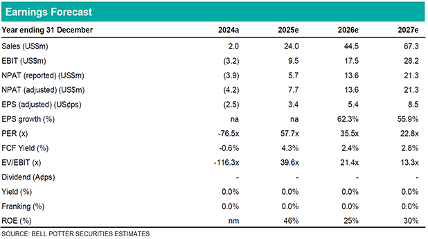 We have revised EPS -1/+21/+36% over CY25/26/27e reflecting higher revenue growth assumptions following today’s contract announcement and increased R&D and S&M opex. We estimate that our CY26e revenue forecast of US$44.5m is 61% backed by committed orders and recurring revenue from the CY25 ending install base. We have upgraded our target price to $3.60/sh reflecting: a lower WACC due to greater certainty in our forecasts given today’s announcement partially offset by increased risk to sentiment on a Ukraine peace deal; and higher terminal value NOPAT and ROIC.