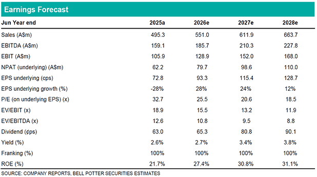 We factor in the upgraded guidance via our ANZ estimates and incorporate some further operating leverage. Our revised revenue estimates see ANZ +11% on pcp in 1H/FY26e, while UK +16% on pcp in FY26e. We now sit at the mid-point of the revenue growth and NPAT guidance range for 1H26e, however our 2H26e forward estimates unchanged. Our NPAT forecasts are upgraded by ~4% for FY26/27/28e.